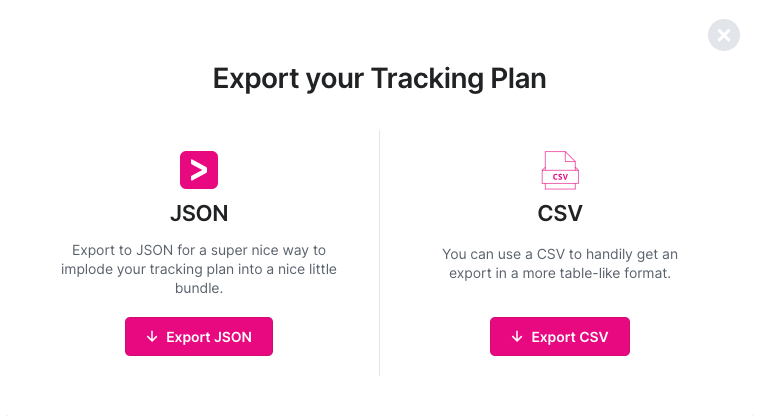 If you find yourself regularly exporting, you might want to configure Auto-Publishing for your tracking plan to consistently stay up to date with a downstream tool such as your analytics platform, your production time validation solution, your SQL table management, etc.
